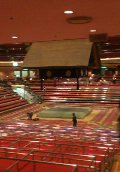 昨日はまず両国に用事があったので、友達のコンサートの開場時間までそのまま両国を探索していました。両国と言えば言わずもがな「相撲」の街ですね。そのため、街には普通にお相撲さんがいます。マックに行けばお相撲さん、駅に行けば、お相撲さん、両国国技館に行けばもちお相撲さん。街中お相撲さんだらけです(←言いすぎ)。そんなわけで昨日は用事を済ませ、ここぞとばかりに両国国技館のある方を探検しようと思い、高架下をくぐりました。するとすると!!!!!今まで見たこともないぐらい大きなお相撲さんが子分を引き連れて歩いてくるではありませんか!! 「でかっ!!!あんなのに勝てるわけ無いでしょ!!」 と心の中で叫びつつ、ちろちろと横目で確認していると、まさかのまさか、かの有名な「把瑠都 凱斗(ばると かいと)関」ではありませんか!!ミーハーな自分は握手をねだりに近づいた初老のおじさんに便乗し、ちゃっかりと握手をすることができました!!なにやら、お相撲さんの体に触るとご利益があるというではありませんか。相撲中継でよく体を触りまくっているおばはん達とは違い、自分はお相撲さんの最大の武器「手」を触ることができました。これは、もう一年間幸運が付きまとうでしょ。ちなみに、把瑠都関はこの方(http://sumo.goo.ne.jp/ozumo_meikan/rikishi_joho/rikishi.php?A=2731)。ミーハーな自分はたったのこれだけで、ファンの仲間入りです(笑)みなさんなにとぞ応援よろしくおねがいします。 幸運に包まれながら、両国国技館に行こうと高架下を潜りぬけると、そこには、信じられない数の人々が駅へと流れ込んでいくではありませんか。なんで?と疑問を抱きつつ江戸東京博物館と両国国技館の間を抜け、駅と反対回りの道を通って、両国国技館の入り口に向かってみますと、なにやら「栃東引退断髪式大相撲」と書かれた看板が立っているではありませんか。これは、今日二回目の幸運です。式自体はもう終わってしまった後だったようですが、なんかものすごく興奮しました。以下写真を少し↓ 入り口の絵1 入り口の絵2 土俵(試合後) 両国国技館(笑) おじさんごめん。 渋谷のオアシスを発見しました。その名も「マンガ喫茶」。何年遅れてるかわからないくらい乗り遅れててごめん。。。